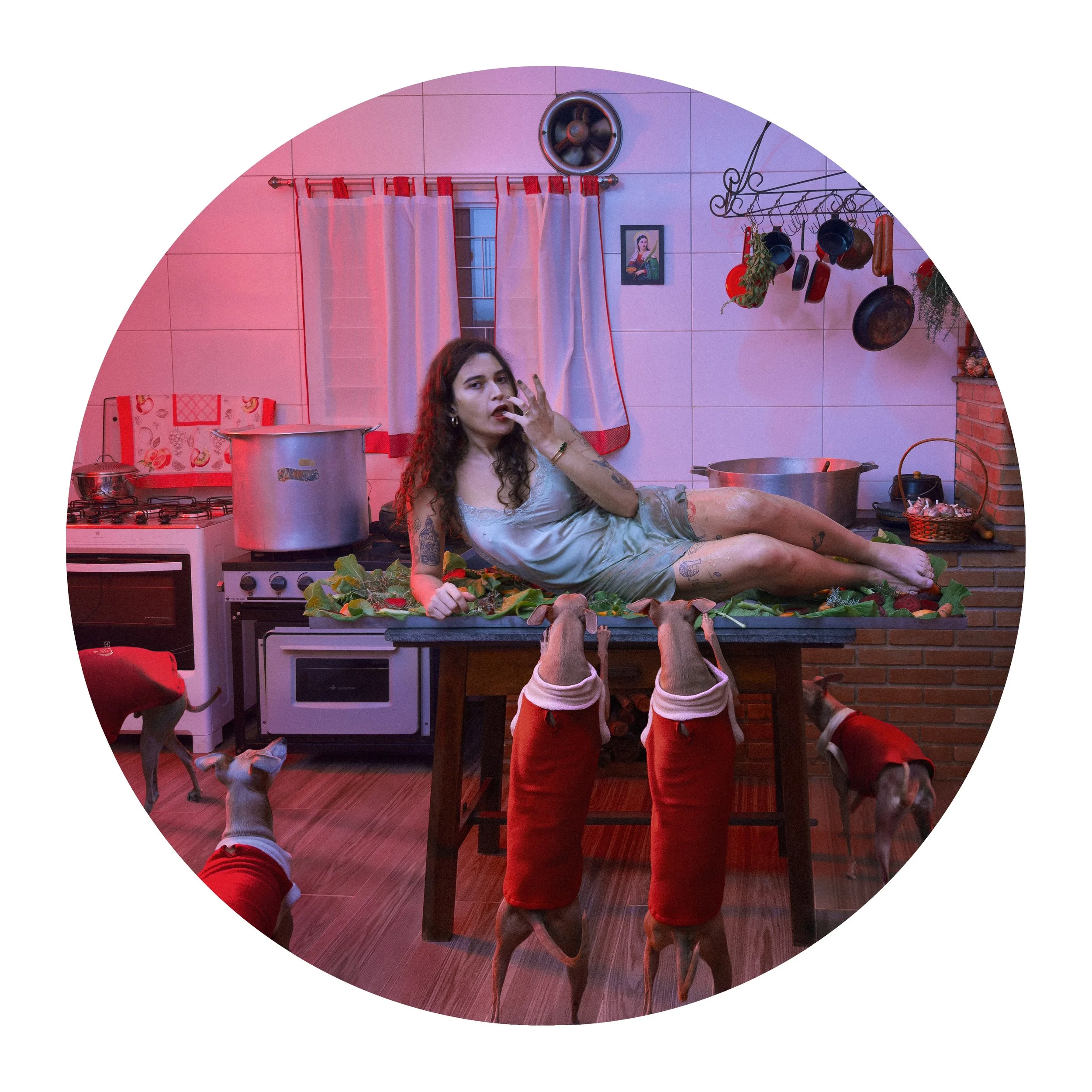 Enquanto a paralisia do sono a captura, alguém, ou algo, a observa. São perturbações sutis causadas por presenças espirituais. A artista aceita a fissura: deixa que a linguagem e a carne se esgarçam. Nesse espaço de colapso e banquete, a intimidade se politiza através da inversão de espécies, da memória e do olhar fraturado da mídia.